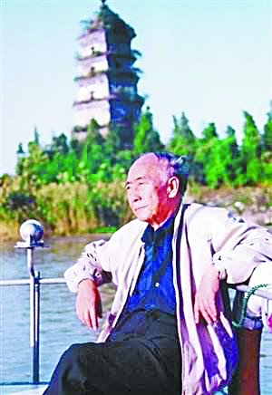 1991年,汪曾祺在故乡高邮运河上