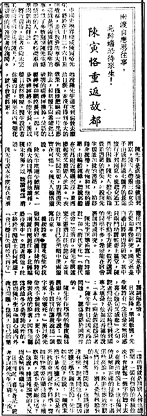 《陈寅恪重返故都》,《华北日报》1946年11月6日刊发