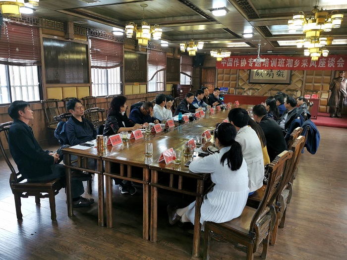 学员代表段爱松、李明春、刘玉、唐力、徐秋良、张鲜明、段瑞秋发言。他们谈到,要自觉利用自身基层工作的机会和经验,自觉地到人民中间去,在火热的生活现场和生产一线寻找创作灵感和素材,深入生活,扎根人民,牢固树立以人民为中心的创作导向。通过近距离参观伟人的家乡,大家接受了红色革命教育的洗礼,也感受到个体命运与国家命运、民族命运的关系,开始思考中国的历史和未来。学员们表示,在今后的创作中,大家要进一步担起记录新时代,书写新时代,讴歌新时代的使命,提高作品质量作为文艺创造的生命线,更好的满足人民精神文化生活新期待。