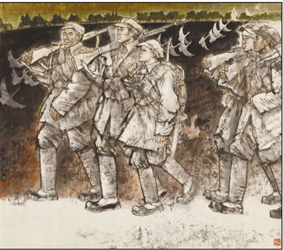 军旅题材美术作品塑造了各时期保家卫国的中国军人形象,以及我军现代化建设取得的成就。早在上世纪50年代,有组织的军事美术创作活动便成为新中国美术发展的重要组成部分。其中,罗工柳油画《地道战》、董希文油画《红军不怕远征难》、潘鹤雕塑《艰苦岁月》,以及人民英雄纪念碑浮雕,都是这个时期的佳作。此后,中国人民解放军的群众性美术创作获得长足发展,无论现实题材还是军事历史画都佳作频出,比如陈逸飞油画《黄河颂》、张道兴中国画《脚踏着祖国的大地》、邵亚川油画《巡堤》等。