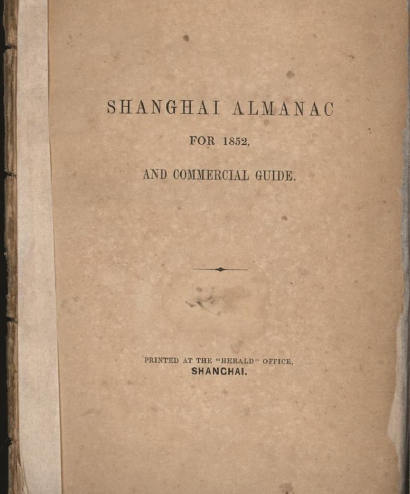 上海图书馆藏《上海年鉴(1852)》,影印本已由上海市地方志办公室推出(上海书店出版社出版)