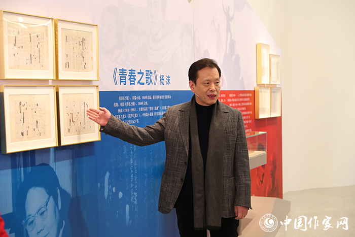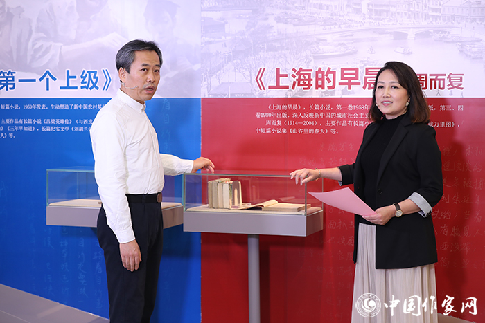 梁鸿鹰(左)介绍《文艺报》创刊背景