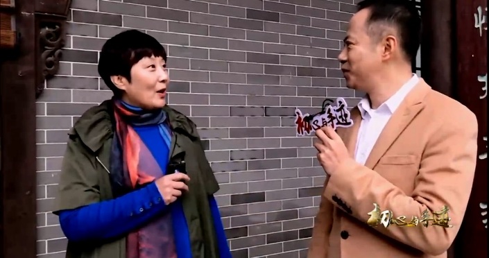 记者在马烽故居采访马烽的女儿段惠芳(左)