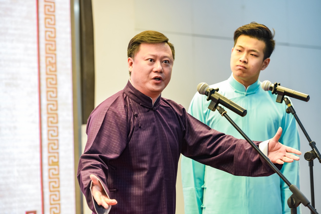 江楠、桑苗源表演响声《学评书》