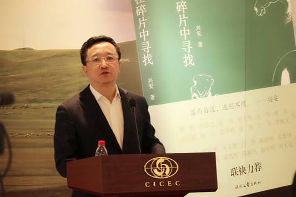 在蒙古族青年马头琴演奏家查日苏悠扬的《黑骏马》乐曲声中,刘恒、阎晶明、许红海、王巨才、叶梅、贺绍俊、关仁山、陈琛、苏茹娅、兴安为《碎片中的寻找》一书揭幕。