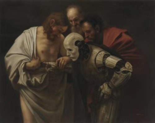 本次展览的诸多作品可谓是古典艺术的“副本”。庞茂琨说:“许多年来,我从未刻意回避古典艺术,相反,我对它有着一种眷念,这种眷念一方面是出于对风格、图像的个人喜好,另一方面,是因为我曾经坚信人类一直活在历史之中,未来也总是在历史中徐徐展开。”