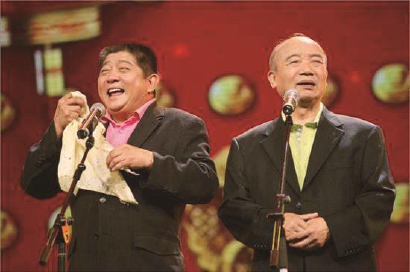 李九松(右)与王汝刚是长达40年的合作伙伴,在台上为观众奉献了许多节目。 (资料照片)