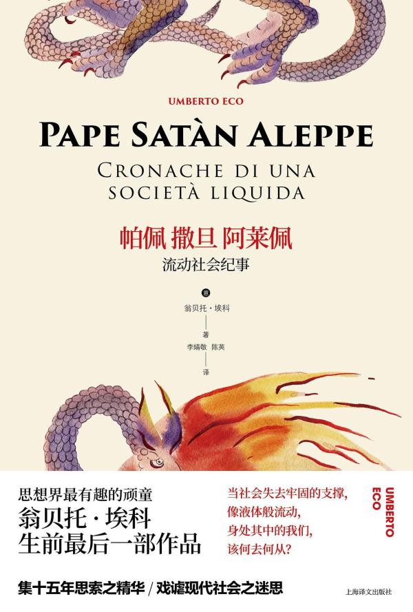说到“老调”,艾柯真是活到老、观察与思考到老,文章也写到老,很令人佩服。越到晚年,艾柯对现实的看法就越悲观,这从他的几本文集中就可以看出来。在《纪事》中他说政治家和绝大多数知识分子都没弄清“流动的社会”的现象及其威力,鲍曼要人们正视危机的呼吁仍然只是“旷野里的呐喊”。从这部文集的书名“帕佩撒旦阿莱佩”也可以看出某种悲观与无奈,艾柯在“前言”解释说这个题目出自但丁《神曲·地狱篇》第七歌,出自冥神普鲁托之口,没有确切的含义,却令人联想起各种稀奇古怪的事物。与副标题“流动社会纪事”相配合,在一个流动的、失去任何坚固东西作为支撑的社会中,一切都是那样的稀奇古怪,也就是电竞竞猜说的妖孽丛生。