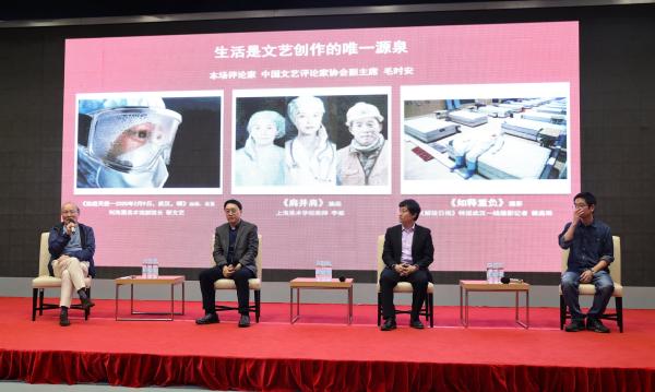 为期一个月的这一主题展闭幕一直受到上海各界的关注,闭幕当天,一场“与时代脉搏一起跳动”为题的抗疫主题创作研讨会也在中华艺术宫展开。“澎湃新闻·艺术评论”(www.thepaper.cn)特选刊研讨会主要发言: