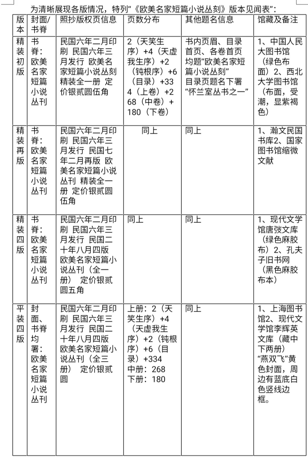 要解答以上疑惑就须找到该书各版进行查对。据笔者搜集,目前可查见的有:精装初版,精装再版,平、精装四版。