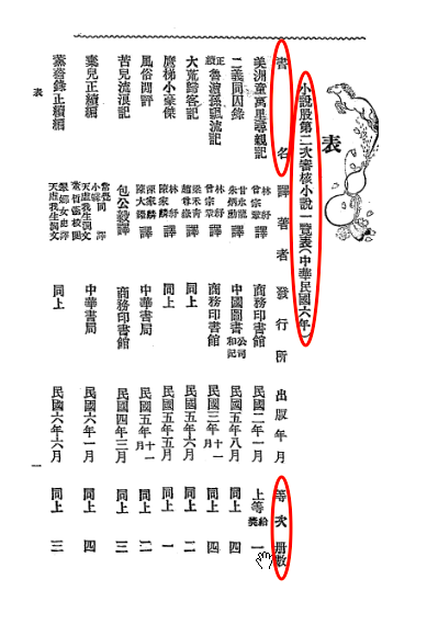 民国四年七月教育部拟定成立的通俗教育研究会“以研究通俗教育事项,改良社会普及教育为宗旨”?,具体事项分小说、戏曲、讲演三股,小说股所掌事项中有一项是“关于新旧小说之审核”?,这也是小说股的工作重心。周痩鹃这本《丛刻》就在《小说股第二次审核小说一览表(中华民国六年)》?里,表中所列“书名”为“欧美名家短篇小说丛刊”,“出版年月”为“民国六年三月”,“等次”为“上等给奖”,册数为“三册”。由此可确定小说股审核的是平装三册本,此处出版年月的记载证实了笔者上一部分对平装初版发行时间当为3月的推测。而此处所列书名《丛刊》而非《丛刻》可知取自封面,这也是小说股审核小说拟定评语的一个依据。