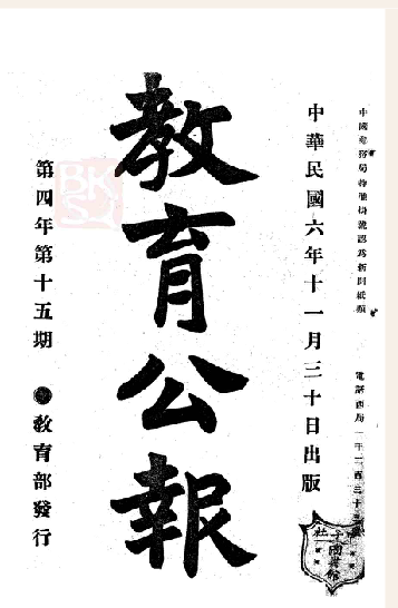 ?《教育公报》第四年第十五期,1917年11月30日出版,教育部教育公报经理处发行。