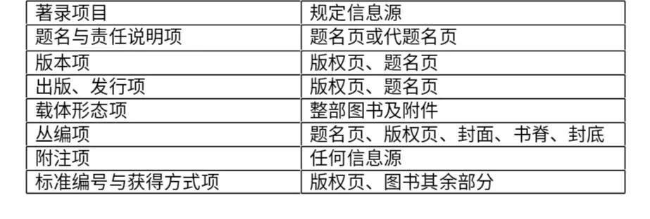 《中国文献编目规则(第二版)》规定普通图书著录规则适用于民国图书。2. 0. 5. 2条款规定了普通图书各著录项目的规定信息源及其选取的先后顺序(如下表)。