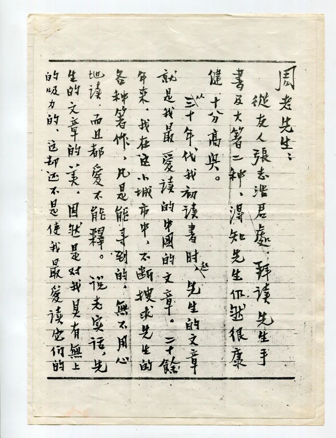 上世纪六十年代致周作人的书信(首页)