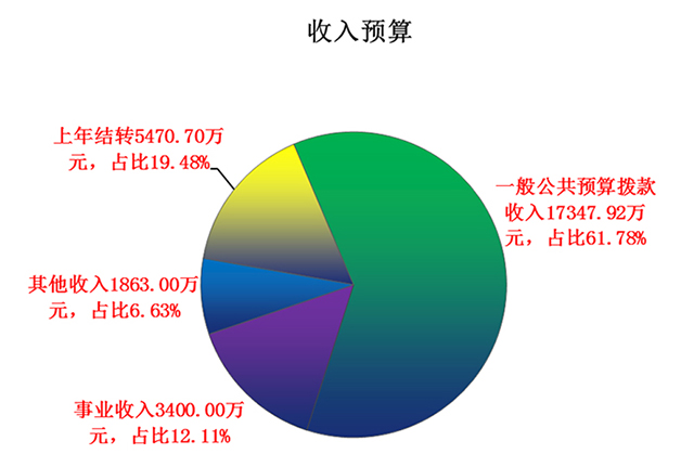 电竞竞猜官网2020年收入预算28081.62万元,其中:上年结转5470.70万元,占比19.48%;一般公共预算拨款收入17347.92万元,占比61.78%;事业收入3400.00万元,占比12.11%;其他收入1863.00万元,占比6.63%。