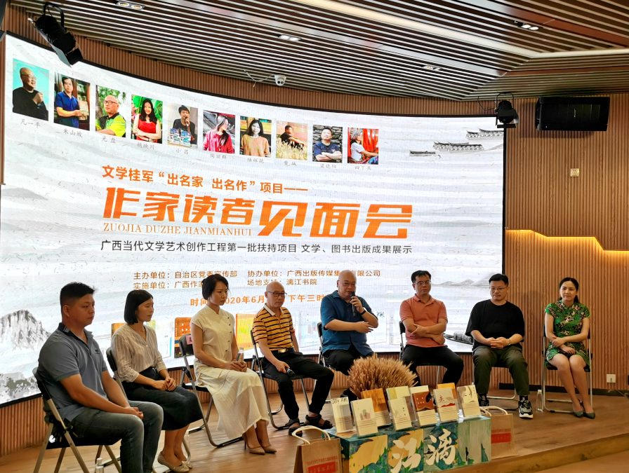 6月27日,文学桂军“出名家 出名作”项目作家读者见面会在南宁漓江书院三祺广场店举行。项目签约的广西名作家凡一平、朱山坡、光盘、陶丽群、陆辉艳、费城、梁晓阳、四丫头等代表10名主创成员莅临会场,与读者分享创作成果,介绍创作经验,畅谈创作感悟,与读者举行读书分享及互动,还有签名赠书活动。
