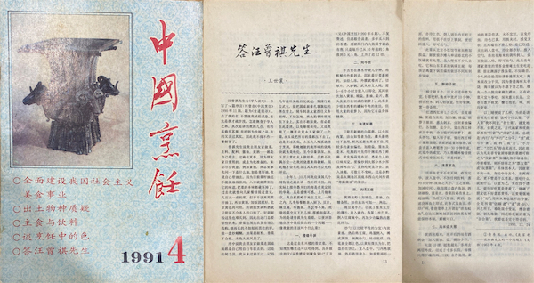 《中国烹饪》创刊于1980年,畅安老与于光远、王利器、许姬传等七人为顾问,汪曾祺先生也偶做文章,1990年汪先生为《学人谈吃》写了一篇序言,发表在《中国烹饪》1990年第十一期,题目为《食道旧寻》,文中点了畅安老的名抛砖引玉,提及畅安老精于烹饪,曾有一道焖葱技惊四座。