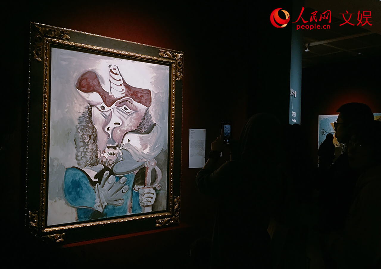 观众在毕加索《带鸟的步兵》前驻足观看。人民网 孟丽媛摄