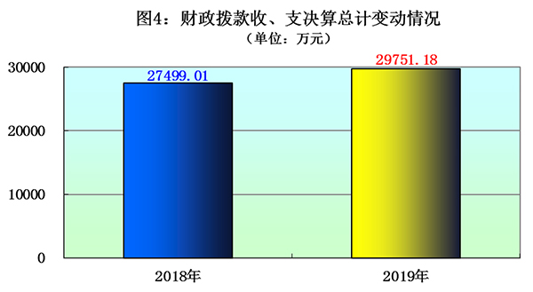 2019年度财政拨款收、支总计29751.18万元。与2018年相比,财政拨款收、支总计各增加2252.17万元,增幅8.19%,主要是文化旅游体育与传媒支出中的一般行政管理事务和社会保障和就业支出中的机关事业单位职业年金缴费支出增加。