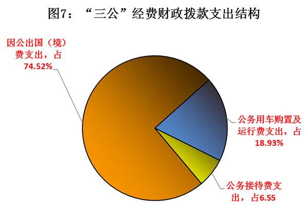 2019年度“三公”经费财政拨款支出决算中,因公出国(境)费支出决算429.76万元,占74.52%;公务用车购置及运行费支出决算109.20万元,占18.93%;公务接待费支出决算37.76万元,占6.55%。具体情况如下: