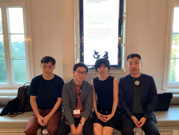 第一届全球真实故事奖中国区入围者与评委之一吴琦在活动现场合影,左起:刘子超、吴琦、巴芮、杜强