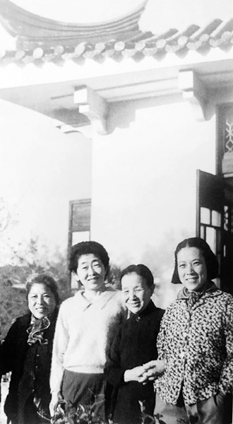 1950年代初期,黄庆云(右一)与冰心(右二)、廖梦醒(左一)、日本作家松冈洋子(左二)