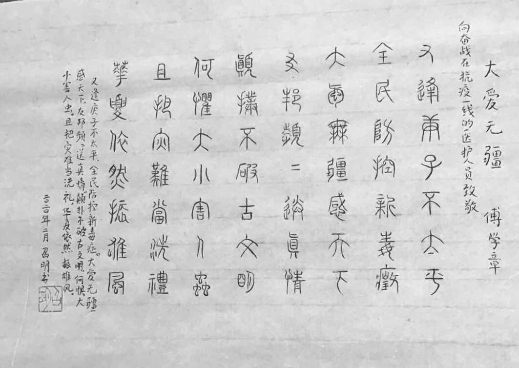 庚子年,是一个不平凡的年份。新冠肺炎疫情暴发后,电竞竞猜广大老同志非常关心疫情防控进展,十分牵挂在一线抗击疫情的医护人员的安危。老同志们由于年龄、身体等原因无法参与一线抗疫工作,但他们始终心系国家、社会,始终情牵疫区人民,他们响应党中央号召,努力配合做好个人防护工作;并发挥自己所长,以书画的方式表达对党和政府抗疫工作的坚定支持,以及对广大抗疫工作者的讴歌赞美,诠释了共产党员的初心和使命。