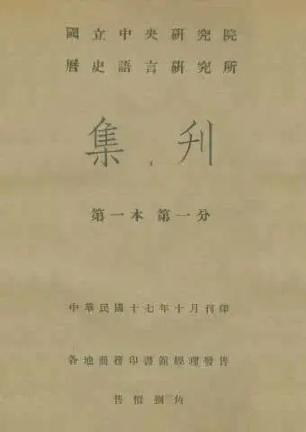 傅斯年撰文《历史语言研究所之工作旨趣》,刊于民国十七年(1928)十月国立“中央研究院”《历史语言研究所集刊》第一本第一分。