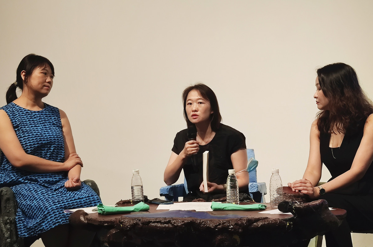 活动现场(从左至右:刘晋锋、罗丹妮、王恰恰)