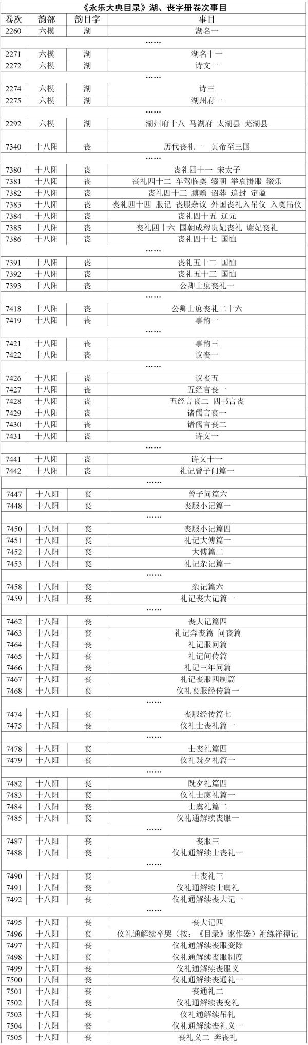 附录:《〈永乐大典〉目录》(姚元之抄本)湖、丧字册卷次事目