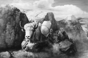 初识牦牛,“形”的要求,让辜静不断打磨绘画水平,潜心创作;“意”的追求,则让他从牦牛出发,洞悉其中蕴念的民族精神和时代精神。