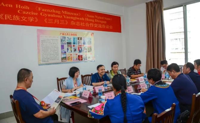 两家杂志社的采编人员还就如何引导、激励壮文作家翻译家的创作热情,让更多壮文读者共享中国当代文学最新成果等方面进行了深入的交流和探讨。