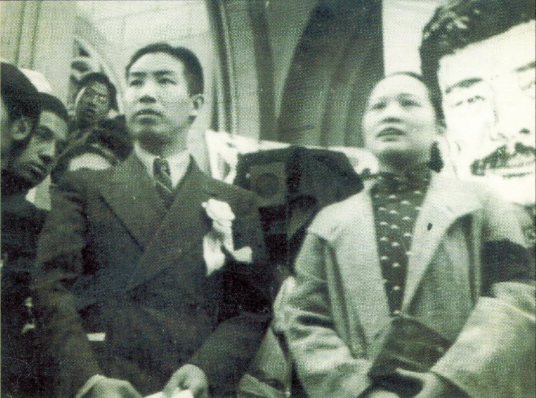 宋庆龄在鲁迅葬仪上发表演说,左前为姚克