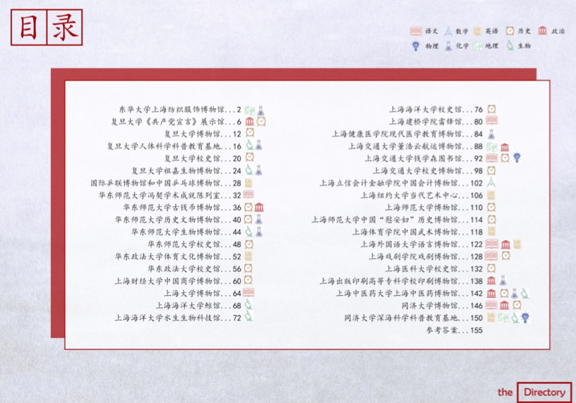 项目成员设计的《沪上高校博物馆资源导览·高中版》手册目录