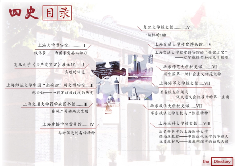 项目成员设计的《沪上高校博物馆资源导览》手册“四史”目录
