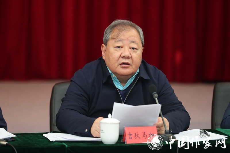 吉狄马加在会上汇报了鲁迅文学院70年来的发展情况。他说,鲁迅文学院是我国唯一的国家级作家培训机构。70年来,鲁院一直敏锐地把握时代脉搏,努力践行党和国家文学发展政策和路线,成为传承中国精神、坚守历史使命与时代担当的文学重镇,滋养文学创造力的一片沃土。目前,鲁院已形成了以中青年作家高级研讨班为中心,兼顾少数民族作家、网络文学作家、行业作家、基层作家,涵盖学历教育、短期培训与国际文学交流,重点突出、覆盖全面、成熟稳定的办学格局和培训模式。鲁迅文学院的70年是与新中国文学事业共同成长的70年,是为当代文学培育和输送人才的70年。70年来,一代又一代作家在这里勤勉学习、积极交流、深入思考,沉潜、再出发,在文学之路走得更高更远。70年里,一代又一代鲁院人兢兢业业,辛勤付出,与时俱进,开拓进取,为鲁院的建设和发展倾注智慧和汗水,使鲁院的文脉得以长久传承和弘扬。在未来的时光中,鲁迅文学院必将继续在党的坚强领导下,将使命扛在肩头,以饱满的姿态不懈进取,持续发力,紧贴时代脉搏,做到无愧于时代和人民的期望,为新时代中国特色社会主义文学教育事业作出更大的贡献。