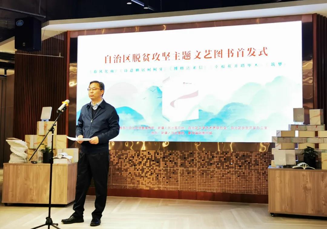 2020年12月4日,新疆脱贫攻坚主题文艺图书首发仪式在乌鲁木齐新华国际图书城举行。新疆维吾尔自治区党委宣传部副部长任彦宾、新疆维吾尔自治区扶贫办一级巡视员陈雷、新疆人民出版总社党委副书记、副总编辑范聪卓、新疆维吾尔自治区党委宣传部文艺处处长张太保、新疆维吾尔自治区扶贫办脱贫攻坚督查专员张代茂、新疆人民出版总社出版编务部部长罗卫华,以及自治区党委宣传部机关团委代表、自治区文联代表、新疆人民出版总社代表,作家代表、译者等参加首发仪式。新疆维吾尔自治区文联党组成员、秘书长、新疆作家协会副主席熊红久主持首发仪式。