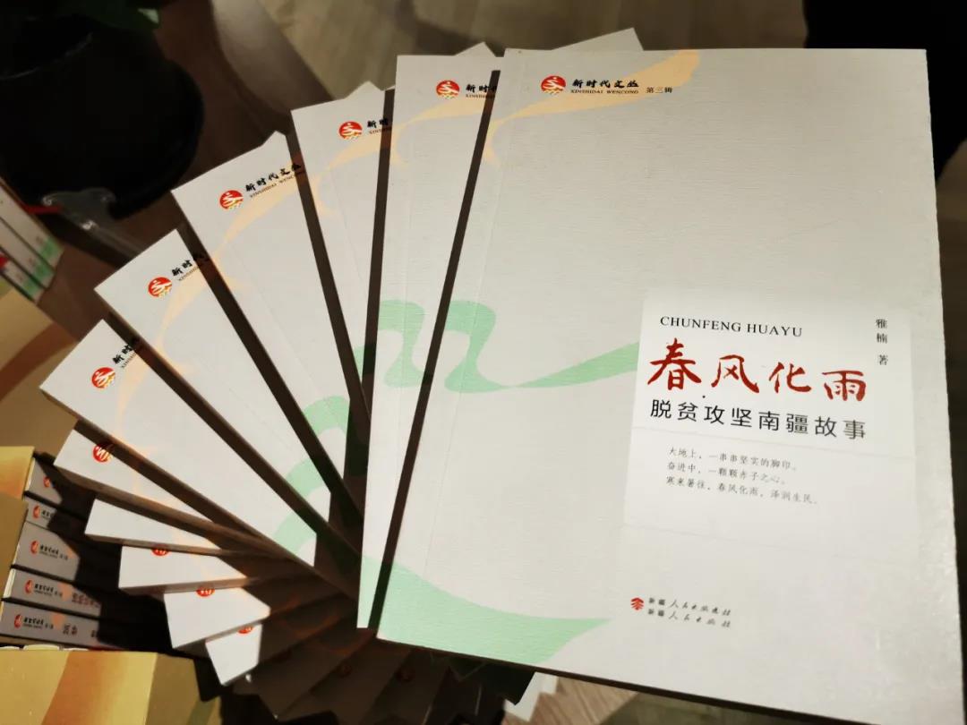 在新疆维吾尔自治区党委宣传部的统一安排部署下,新疆维吾尔自治区文联,新疆作家协会、新疆人民出版总社联合精心策划,组织全疆优秀作家,奔赴全疆各地,深入人民生活,用拳拳赤子之心、深厚的国家情怀、充沛激昂的感情、细致入微的笔触,创作了脱贫攻坚主题图书《春风化雨——脱贫攻坚南疆故事》《筑梦——脱贫攻坚新疆纪事》《诗意栖居柯柯牙》《幸福花开塔里木》《博格达来信》五本图书,从不同视角全面书写了新疆脱贫攻坚故事,反映了新疆各族人民群众携手奋斗奔小康的幸福生活。