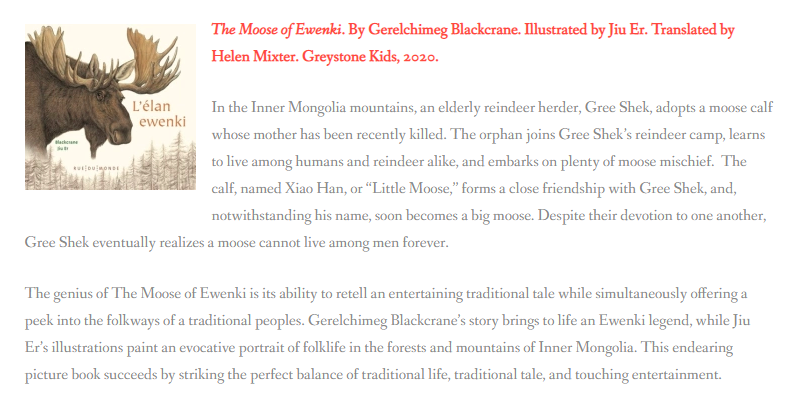 《鄂温克的驼鹿》获2020年度美国伊索荣誉奖