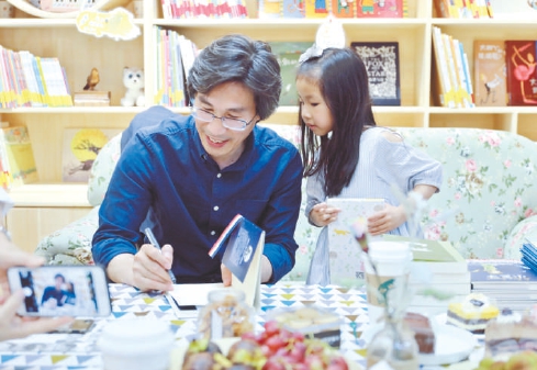 树才给小朋友签名。