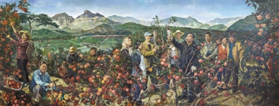 在决战脱贫攻坚的道路上,涌现出许多先进典型。他们把身影留在田间地头,把真情献给人民群众,不仅温暖了一方百姓,也感动了很多美术工作者。一批讴歌扶贫工作者的美术作品相继诞生,展现出当代主题性美术创作在观念和方法上的新思考与新探索。比如,王珂创作的中国画《人民的好县长——高德荣》,其画面与以往表现英模的视觉样式不同,创作者有意避免将主人公置于村民簇拥之中,而是着重描绘主人公的朴实与奉献,意在向观众揭示高德荣的可敬之处在于扎根西南边陲数十年的平凡坚守。郭健濂、褚朱炯、井士剑合作的油画《太行山上的新愚公——李保国》,描绘了一位“农民”向大家传授剪枝技术的场景,这位“农民”正是河北农业大学原教授李保国。创作者们希望通过这一画面,传递李保国“把我变成农民,把农民变成我”的精神信念。可以看到,当代主题性美术创作不再过于强调典型化的手法,而是以更加平易近人的姿态,构建双重视野下创作者与观者的对话现场。美术工作者尝试以质朴的语言、平视的视角拉近英模人物与人民群众之间的距离,使扶贫脱贫事迹更易引发共鸣和共情。