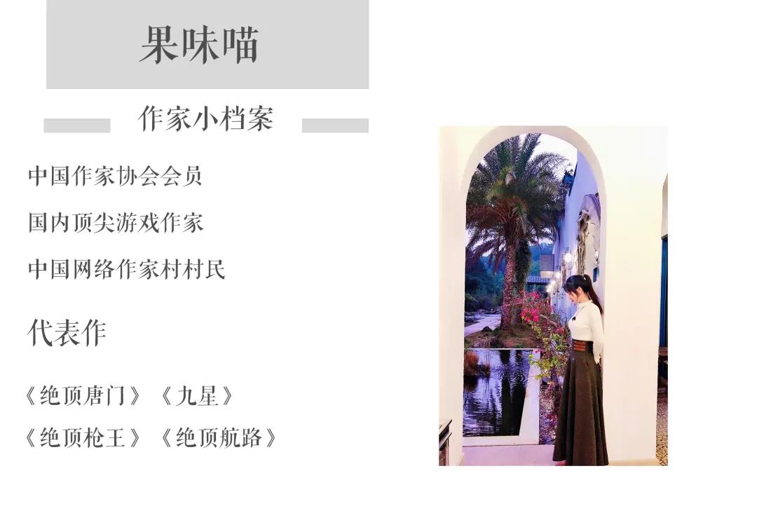 2007年,还在上大学的果味喵写了第一本网游小说,“当时是因为看从零开始,看得那叫一个热血沸腾,恨不能从腾空而起的艾辛格原地起飞的节奏,凌晨一点从被窝里钻出来摸键盘敲开头。”同年,小说被起点女生网以千字30元的价格签约买断,而这也为果味喵毕业后从事写作埋下了伏笔。