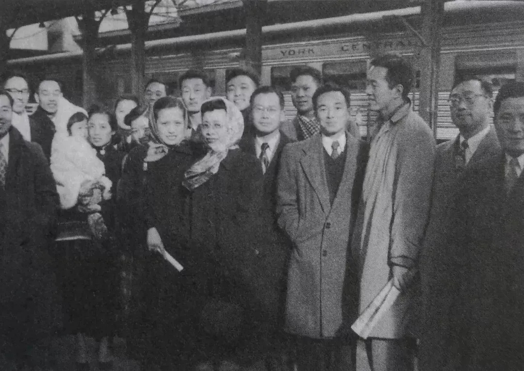 穆旦夫妇回国前在火车站与送行的同学朋友合影