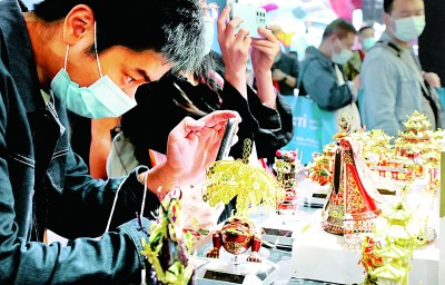 参观者在第十九届中国国际玩具及教育设备展览会上拍摄短视频。新华社记者 方喆摄