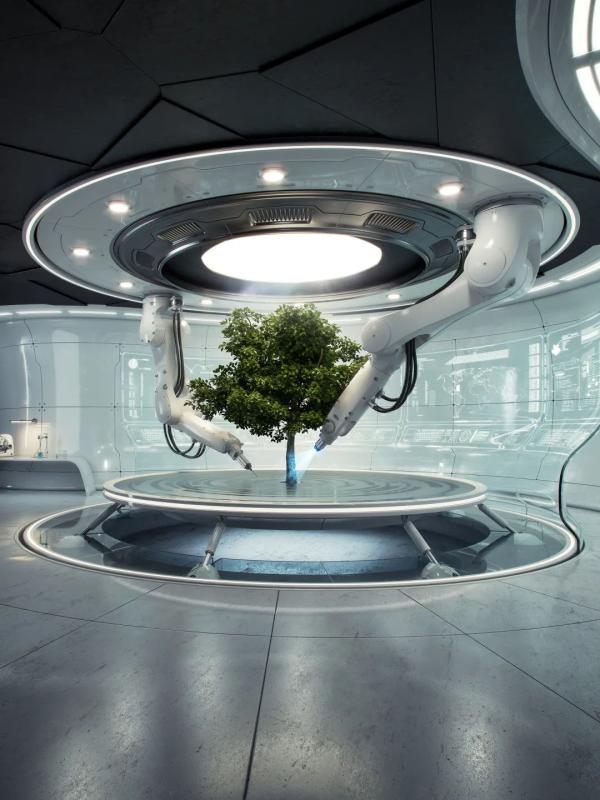 科幻画家想象中的太空植树