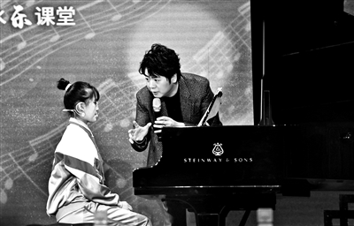 3月15日下午,钢琴家郎朗在古色古香的北京东苑戏楼为北京的小学生们上了一堂别开生面的钢琴课。