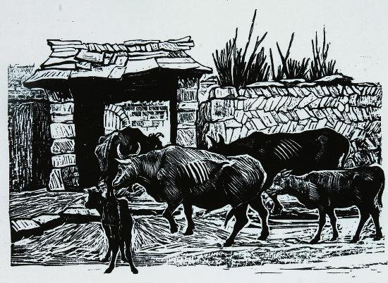 牛群(黑白木刻,1940年) 古 元 作