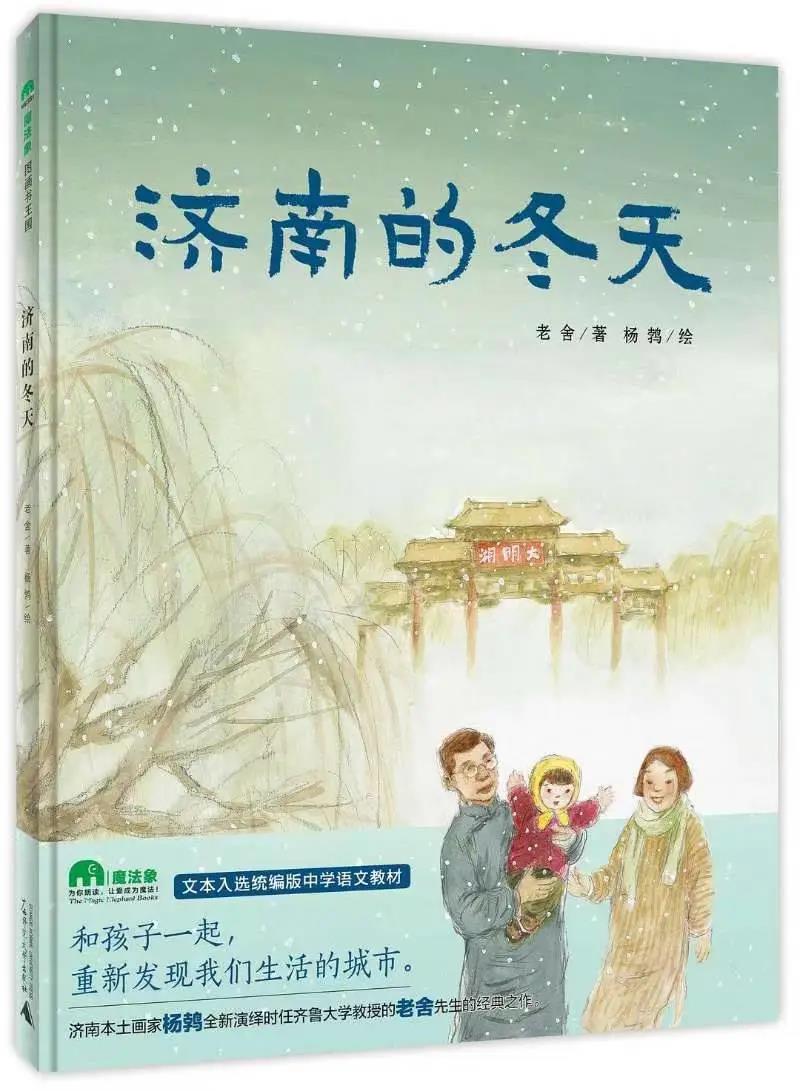 这是一本能够充分体现绘本魅力的作品。老舍先生的散文《济南的冬天》是小时候在课本中就读过的,文字之雅自不必说,但作为一篇写景的文章,按常理想来是很难作为绘本的素材的,济南本土画家杨鹁却另辟蹊径,从老舍的文字出发,结合自己的记忆和观察,用全知视角对近百年前的济南城做了一次纯美的纸上再现。