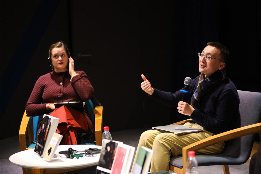3月17日,北京法国文化中心举行“阅读波德莱尔”讲座,复旦大学外国语言文学学院法文系副教授杨振(右一)在现场发言。 受访者供图