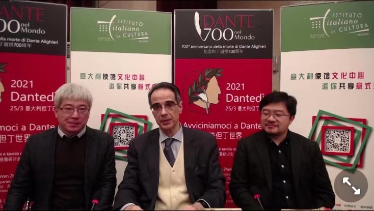 3月25日,意大利驻华使馆文化中心和北京外国语大学意大利研究中心合办的“走进但丁世界”讲座暨研讨会在线上举行。意大利驻华使馆文化参赞孟斐璇(Franco Amadei)、北京外国语大学教授文铮、北京大学意大利学专家成沫、浙江大学副教授朱振宇等参加纪念活动。